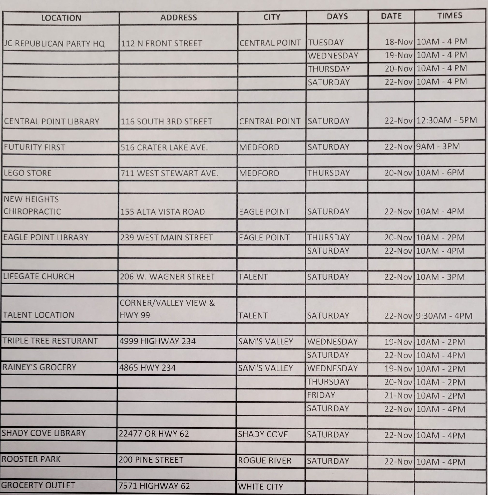 PETITION LOCATIONS NO TAX OREGON – JACKSON COUNTY as of 11/17 (More coming)